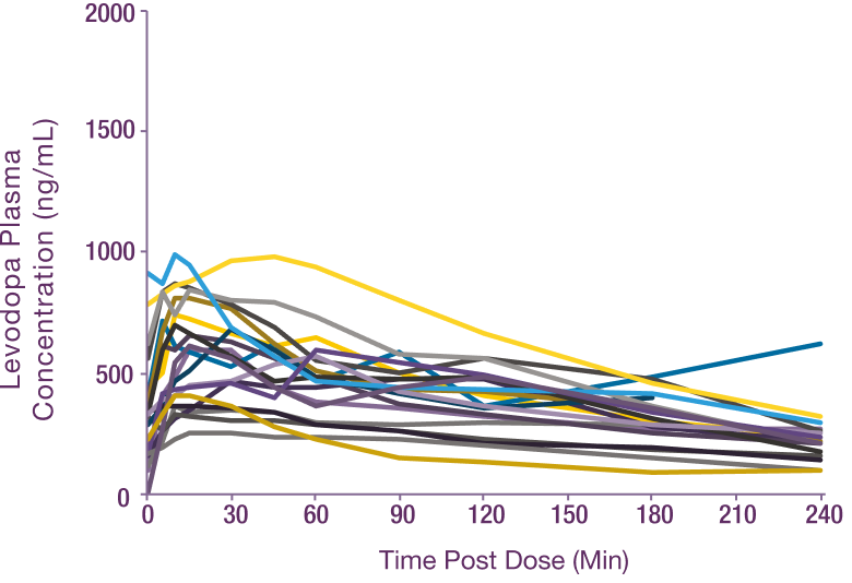 INBRIJA delivers consistent plasma concentrations starting within 10 min3